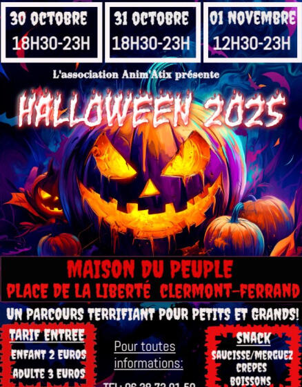 2025 - Organisation d'un parcours hanté Halloween25 pour l'association Anim'Atix à la Maison du Peuple de Clermont-Ferrand