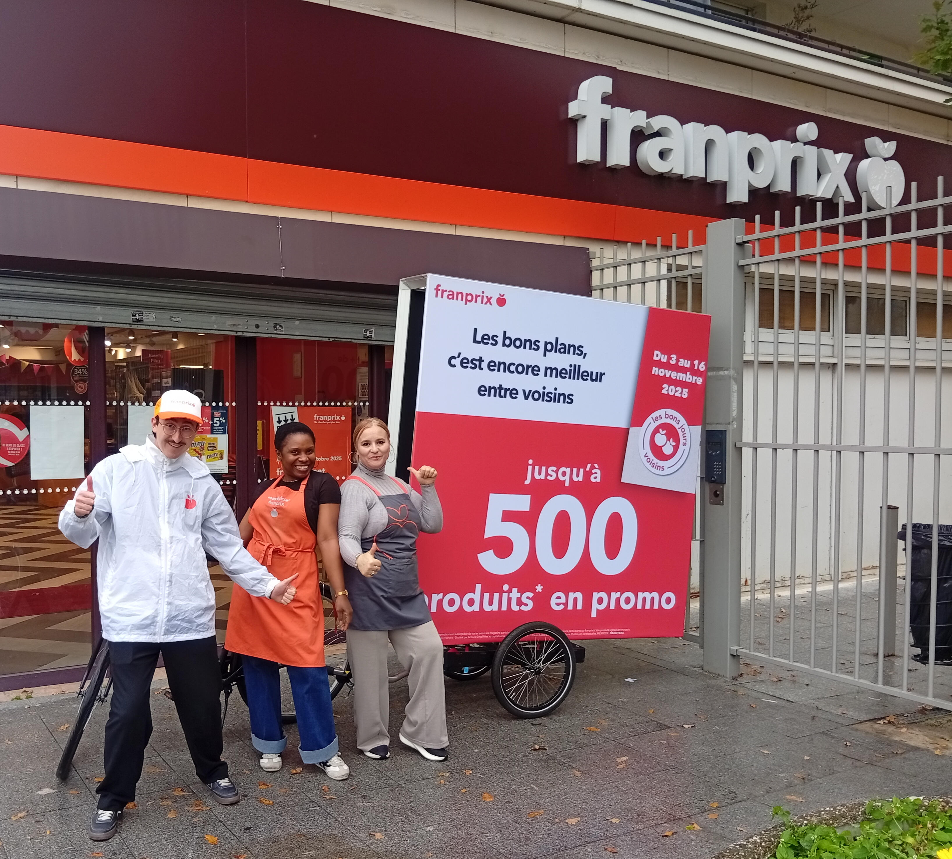 2025 Road show – Opération de street marketing itinérante en région parisienne, avec un dispositif mobile (camion, vélo, matériel promotionnel et animatrice) déployé sur une cinquantaine d’enseignes.